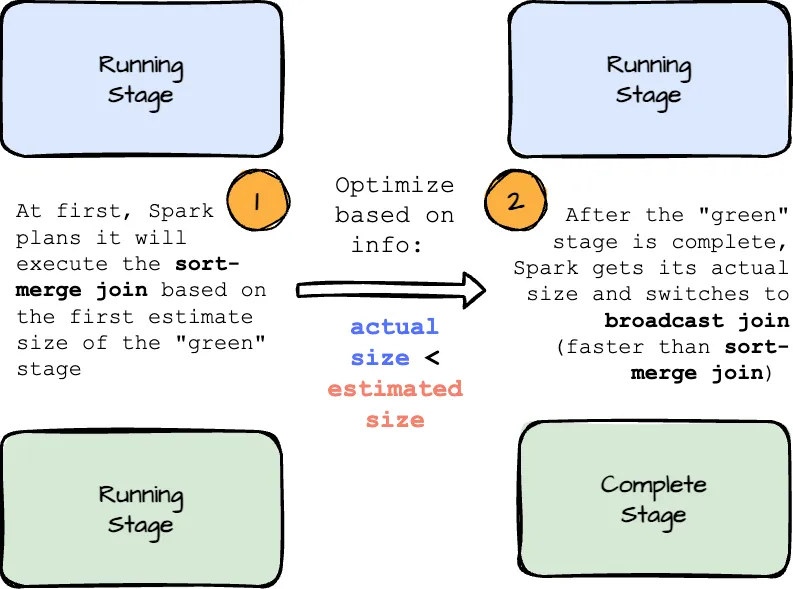 To address this, Adaptive Query Execution (AQE) now replans the join strategy at runtime based on the actual size of the join relation collected during the execution.