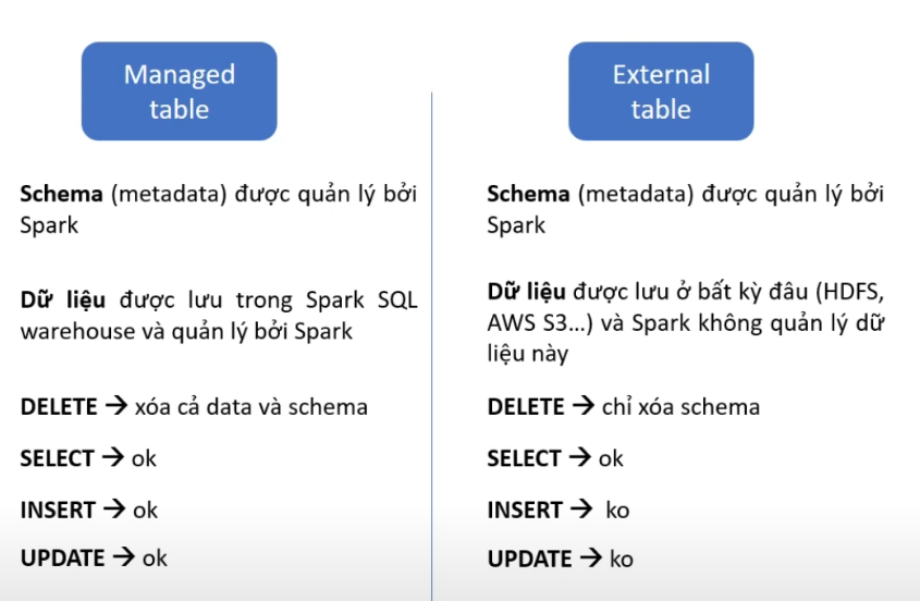 We can’t Insert and update the external table. Because Spark just read data from data files, it isn’t manage table. Therefore, we are only read data and delete their schema.