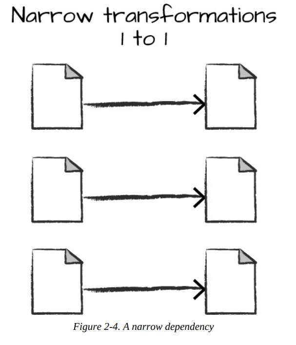 - narrow dependencies: each input partition will contribute to only one output partition