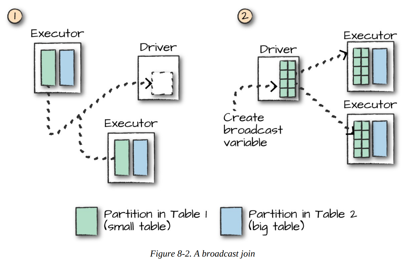Little table–to–little table When performing joins with small tables, it’s usually best to let Spark decide how to join them. You can always force a broadcast join if you’re noticing strange behavior.
