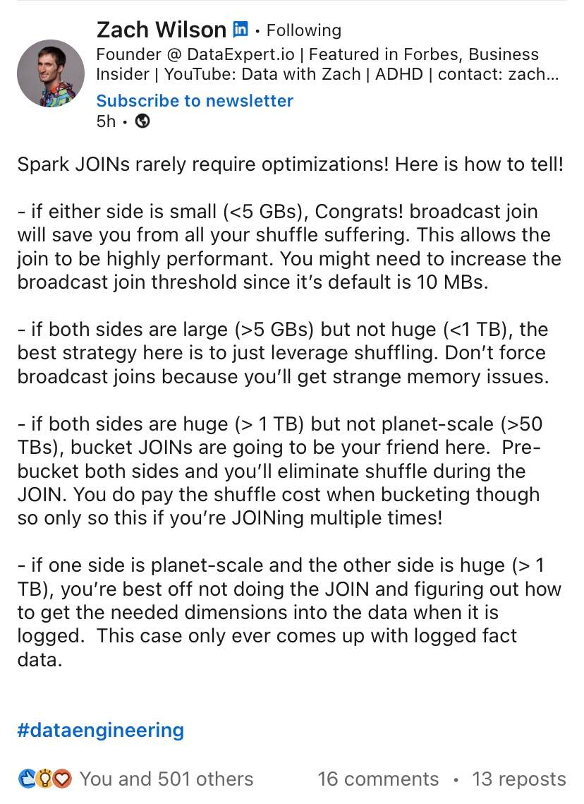 - It is important to consider is if you partition your data correctly prior to a join, you can end up with much more efficient execution because even if a shuffle is planned, if data from two different DataFrames is already located on the same machine, Spark can avoid the shuffle.